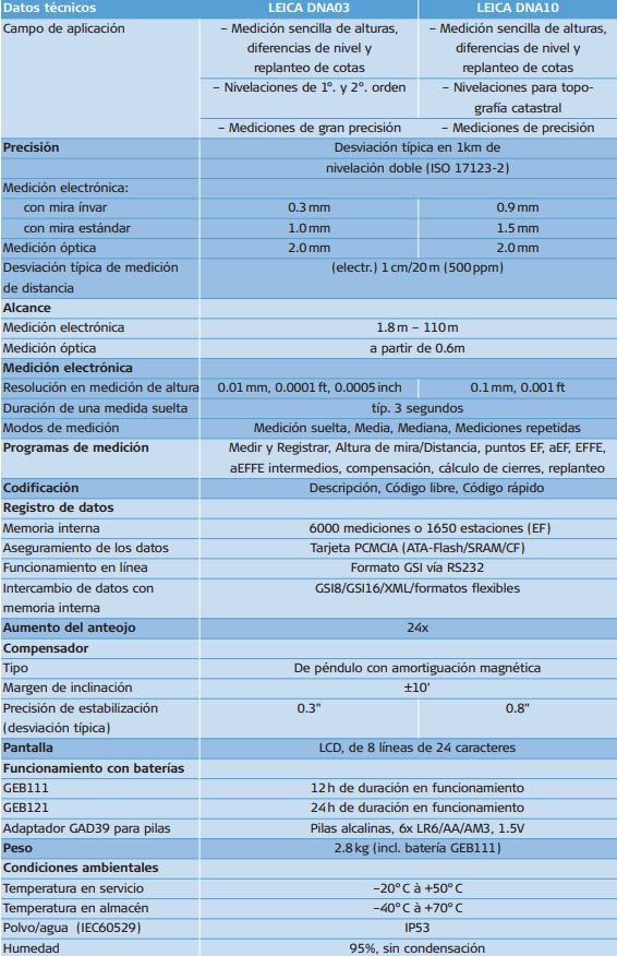 Características de  nivel digital de precisión Leica DNA03